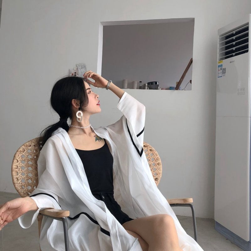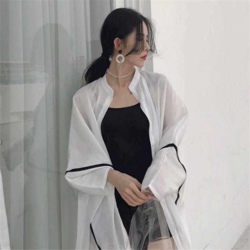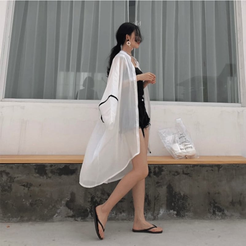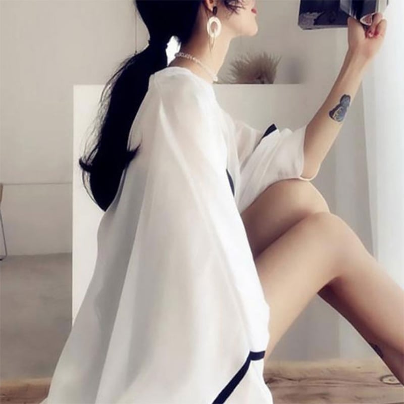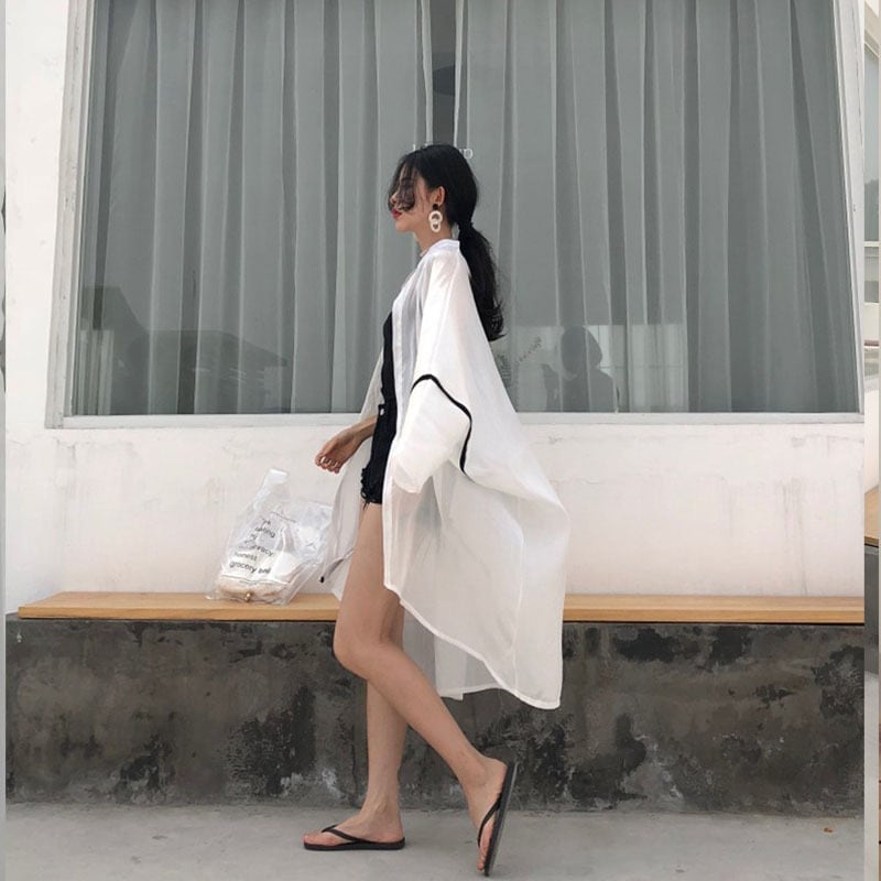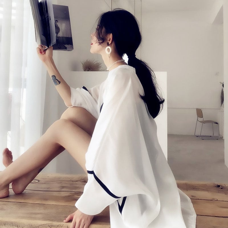韓国系ゆったりUVカットロング丈薄手シャツ<ins-1714>
