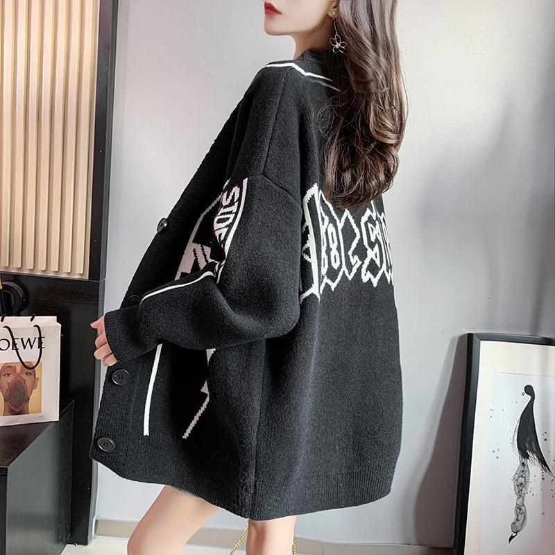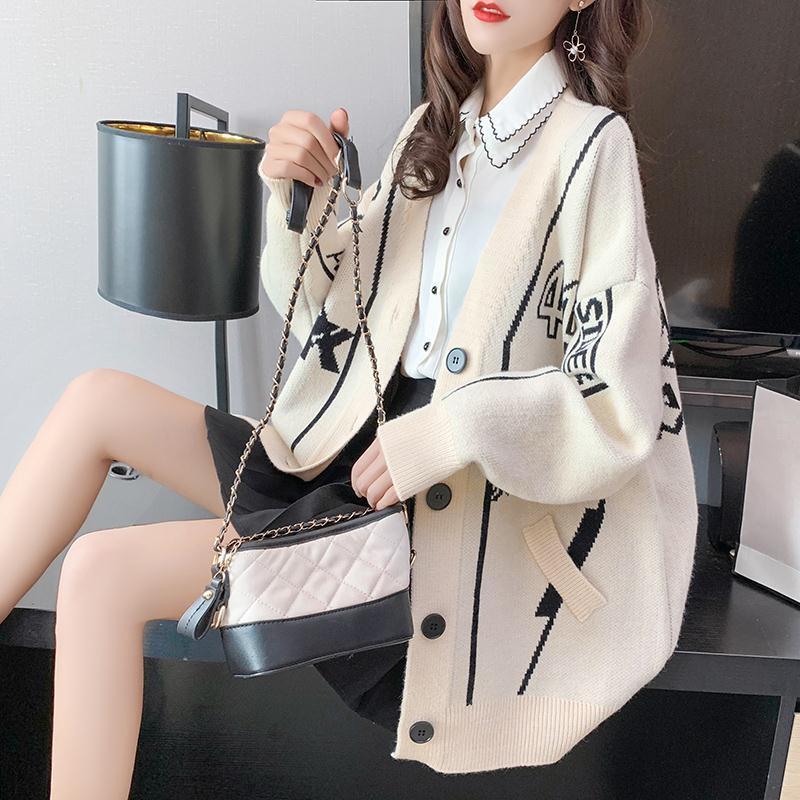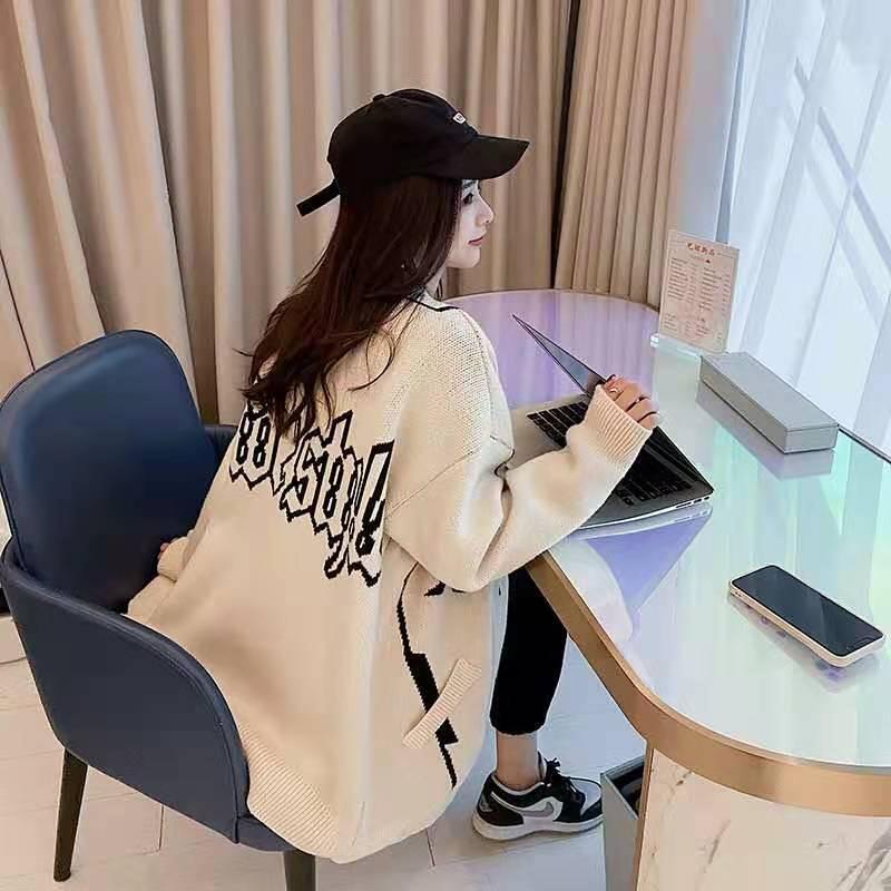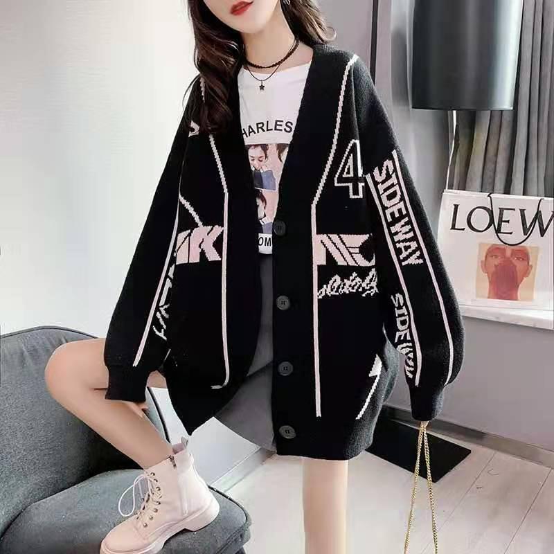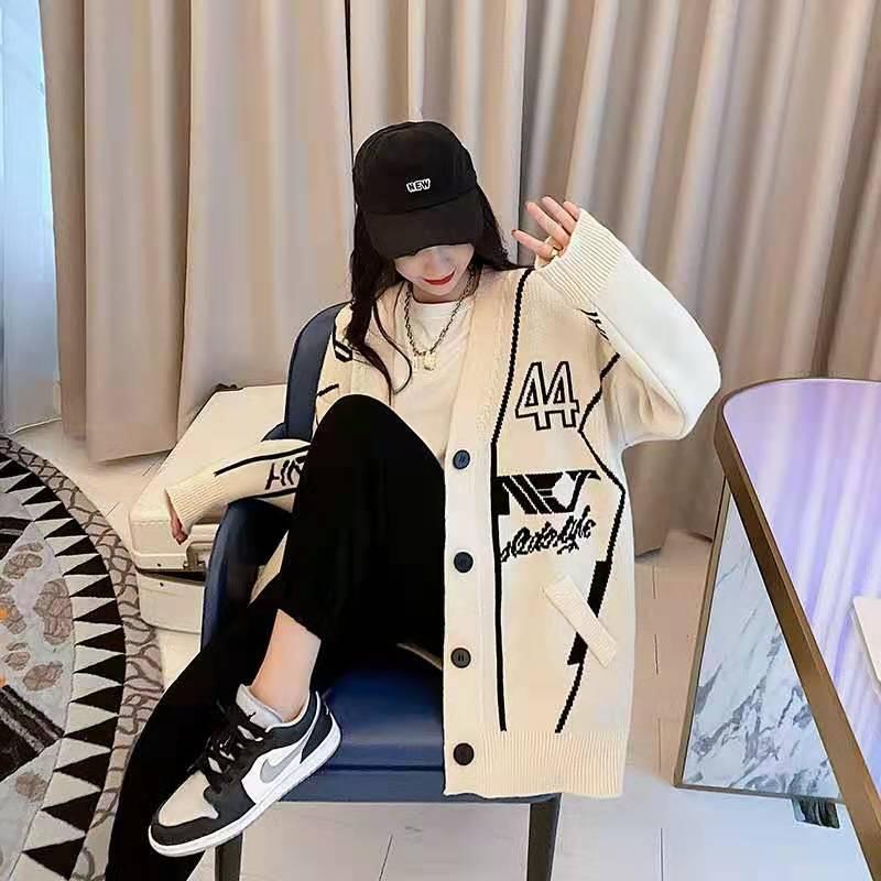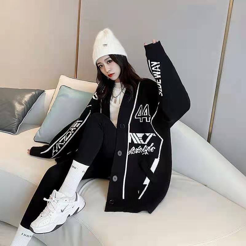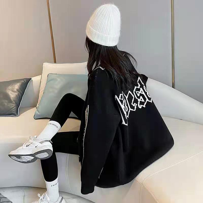 韓国系 英字ロゴ 配色ニットトップス全2色カーディガンins-4784