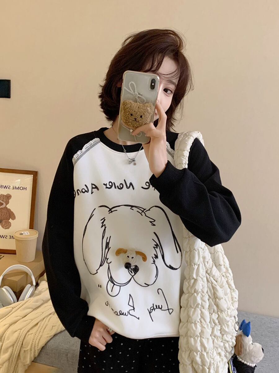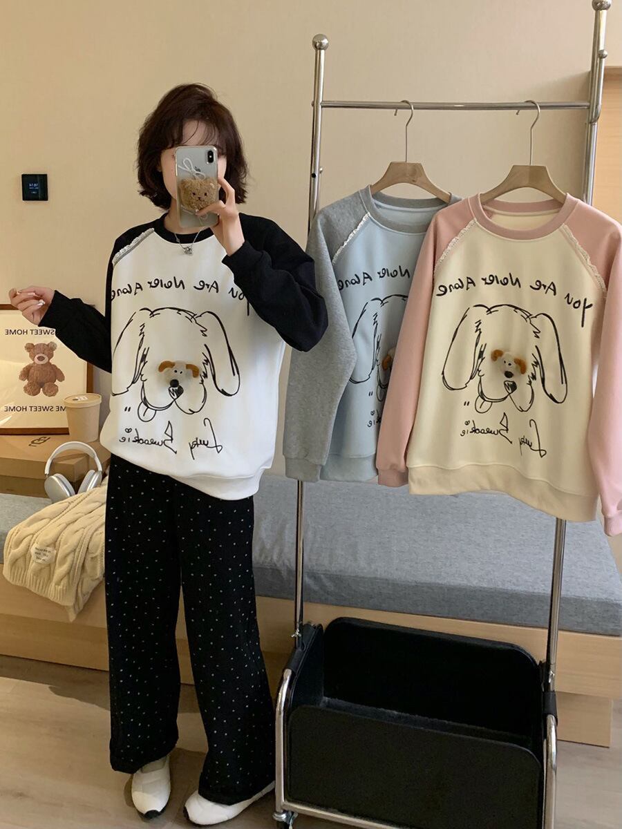 高見えデザイン 3色 プラスベルベット スウェットE-10277