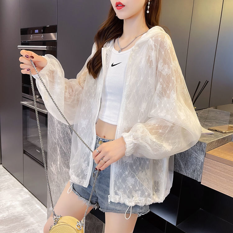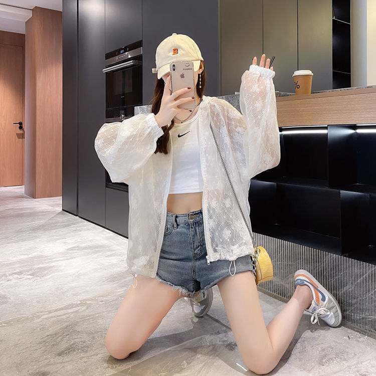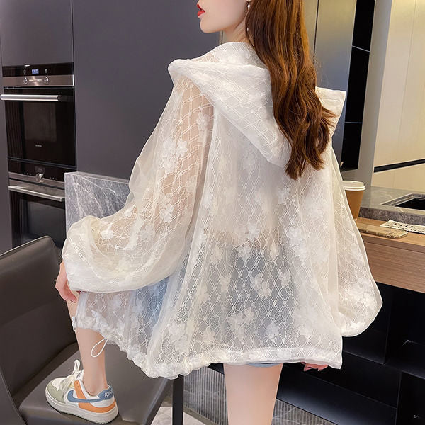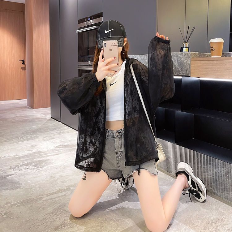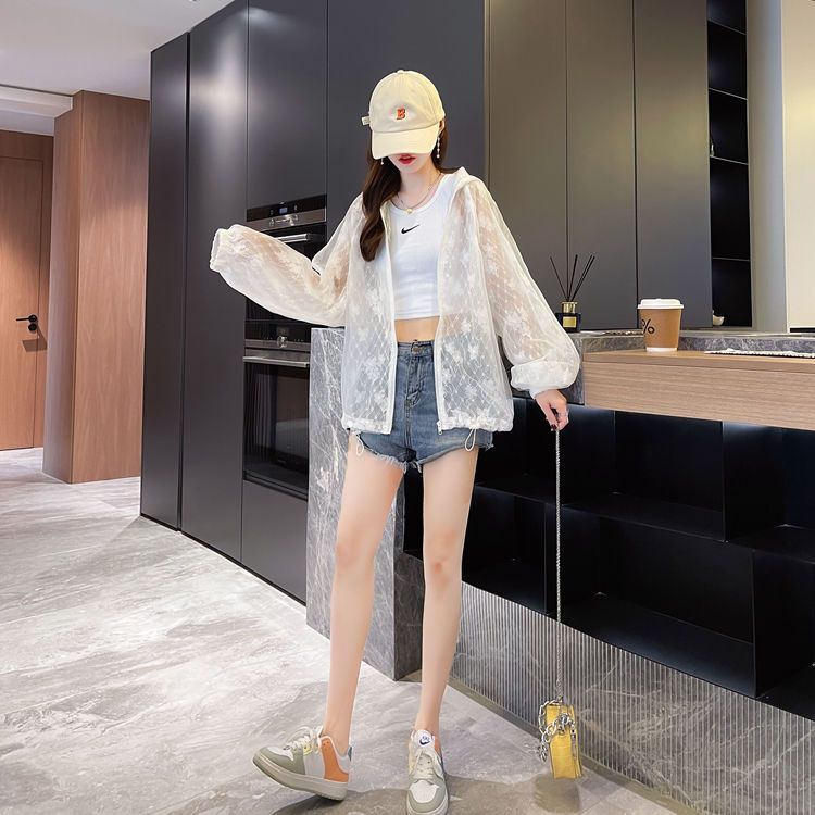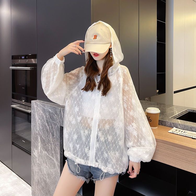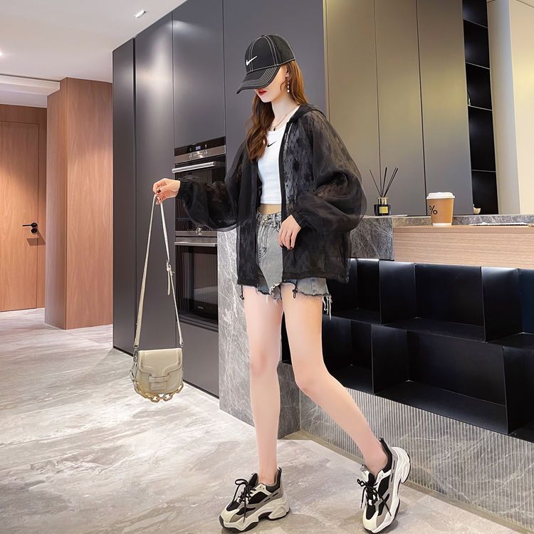 美人度アップ カジュアル 透け感 日焼け対策 チェック柄 パーカー コート-A718