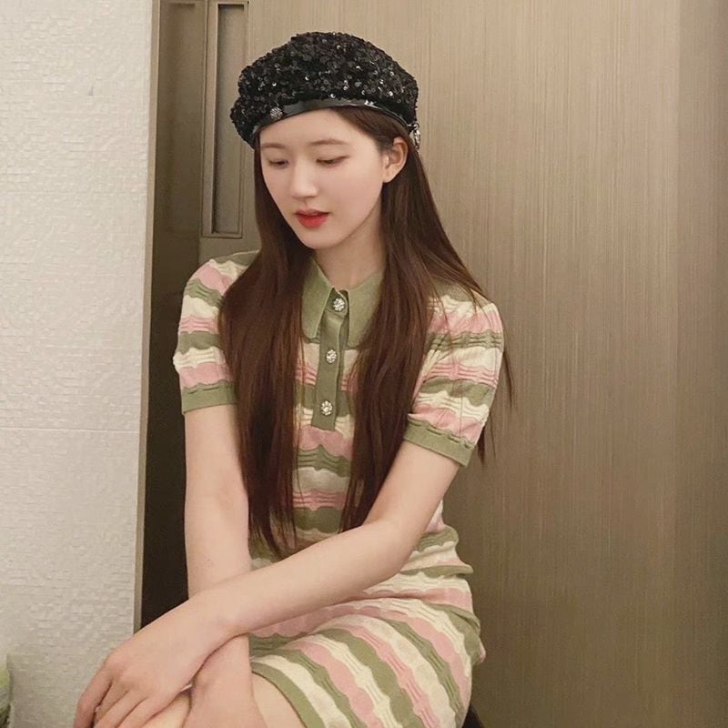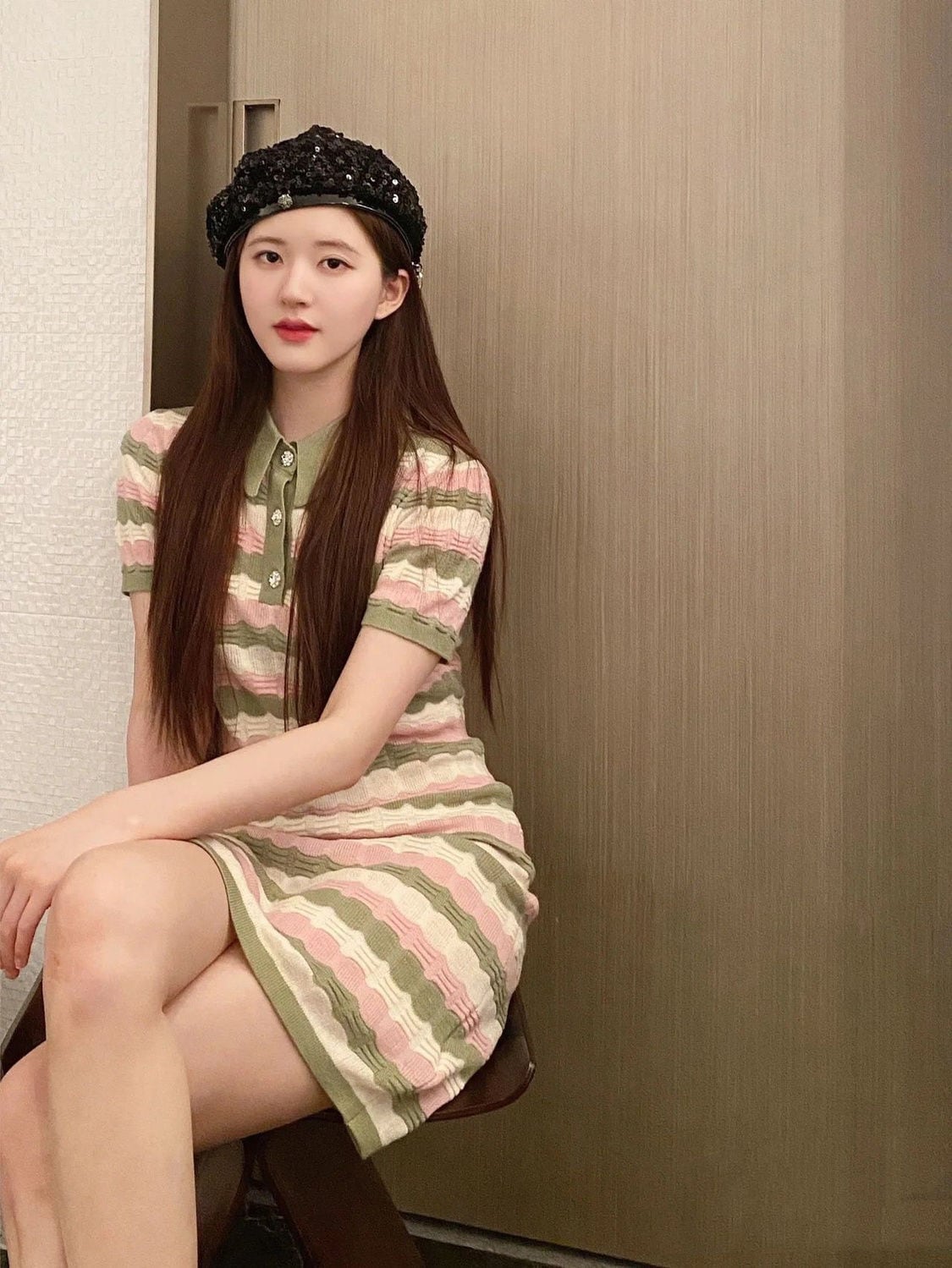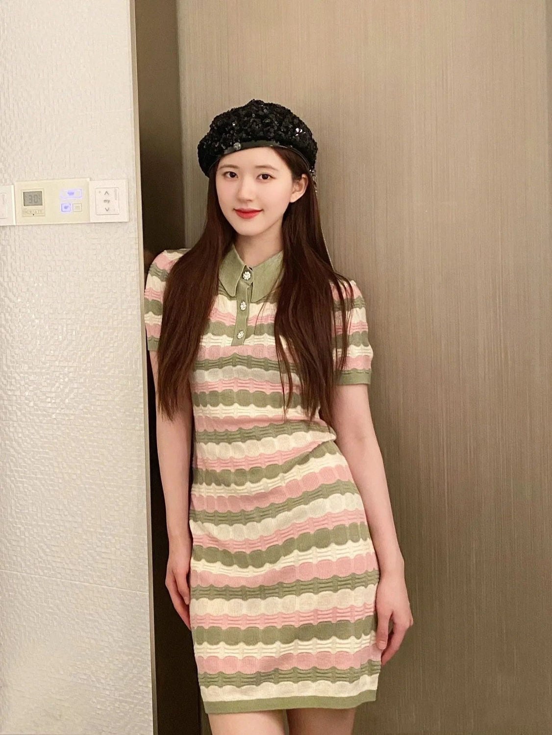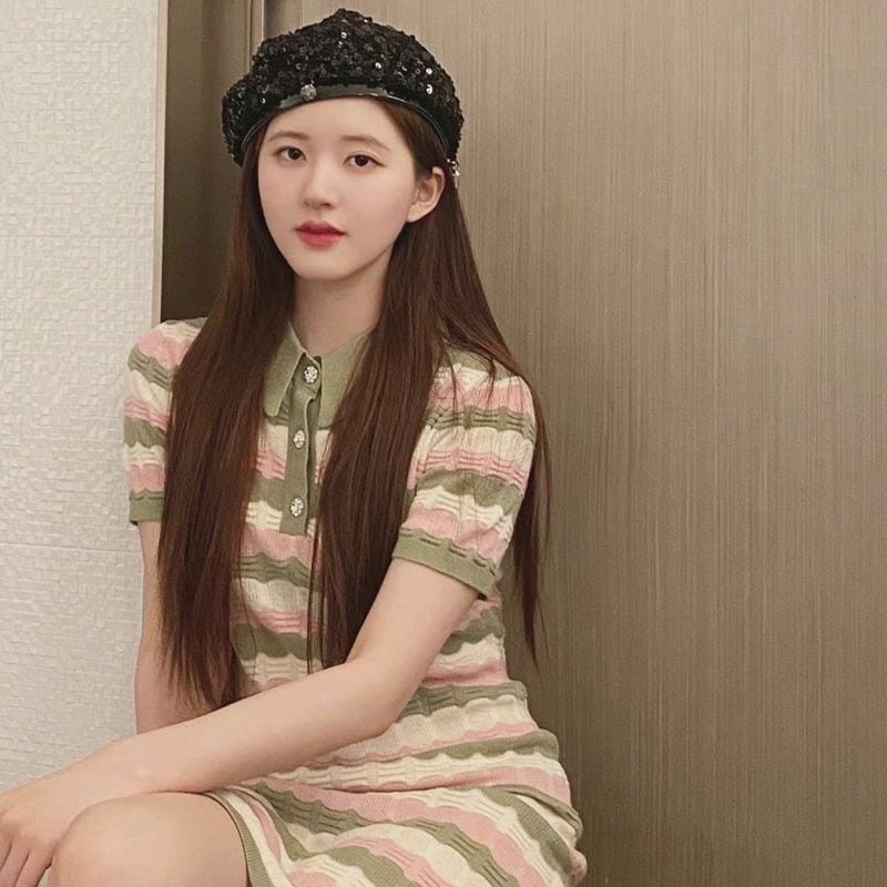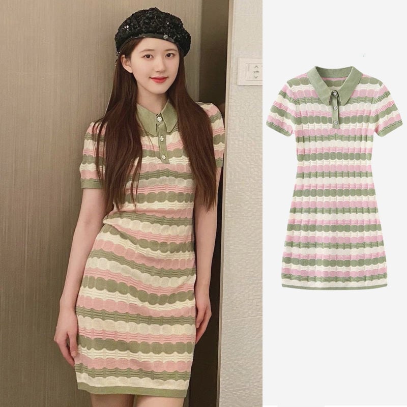 売り切れ必至 スウィート Aライン ストライプ柄 ニットワンピース<ins-8496>