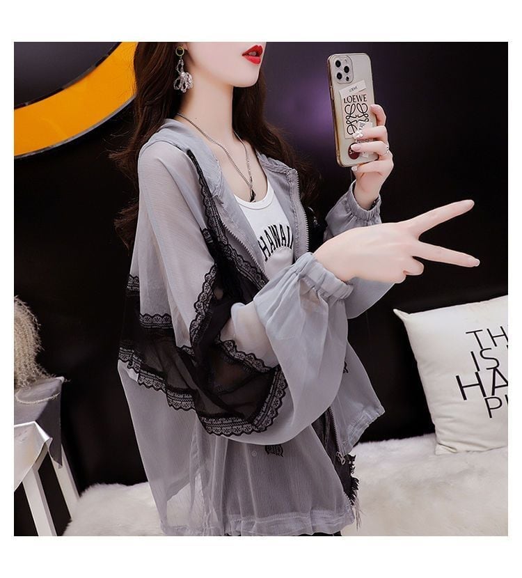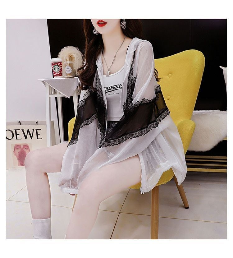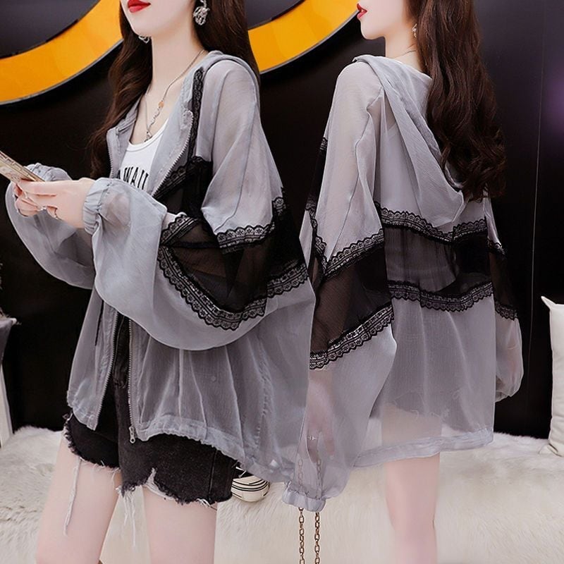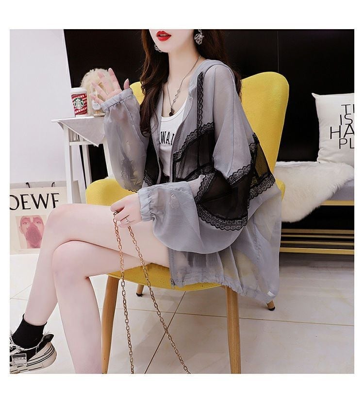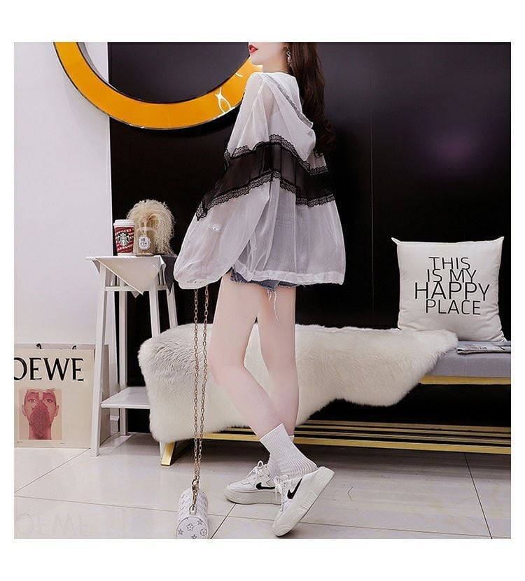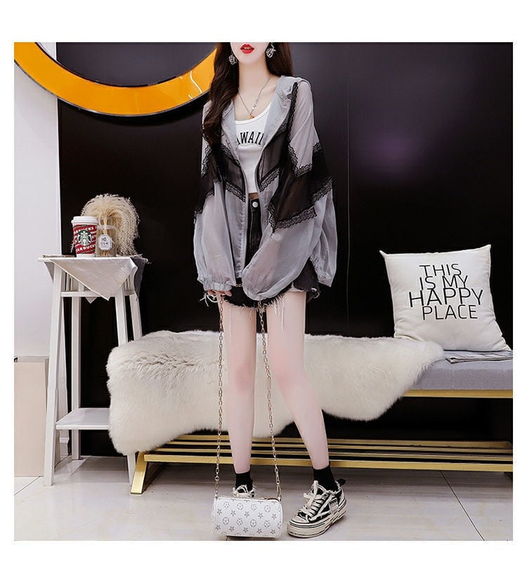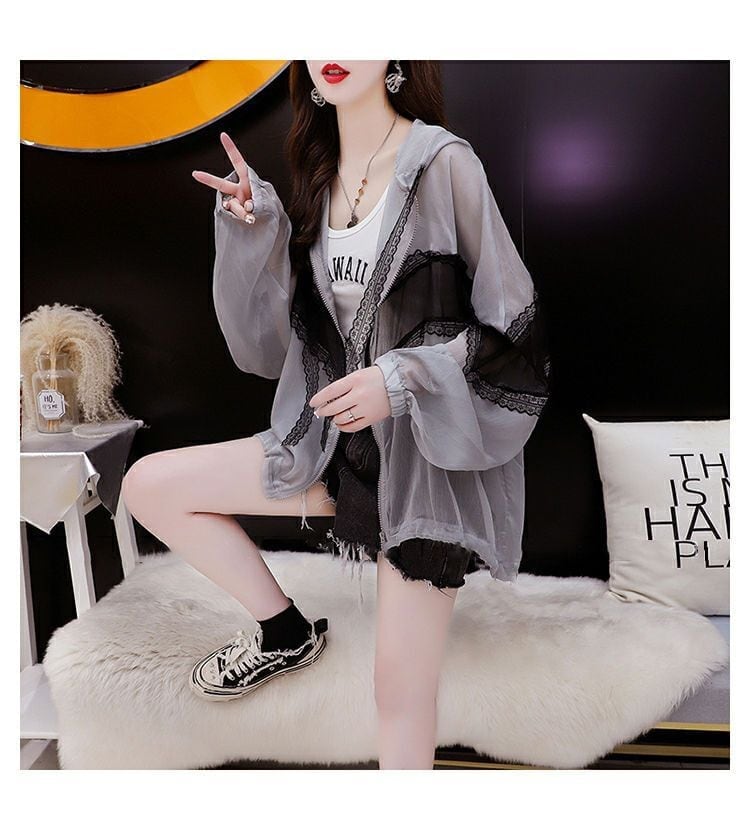 美人度アップ カジュアル 透け感 日焼け対策 切り替え パーカー コート<ins-8065>