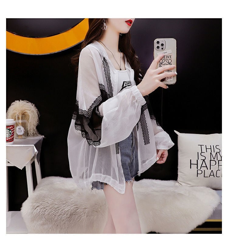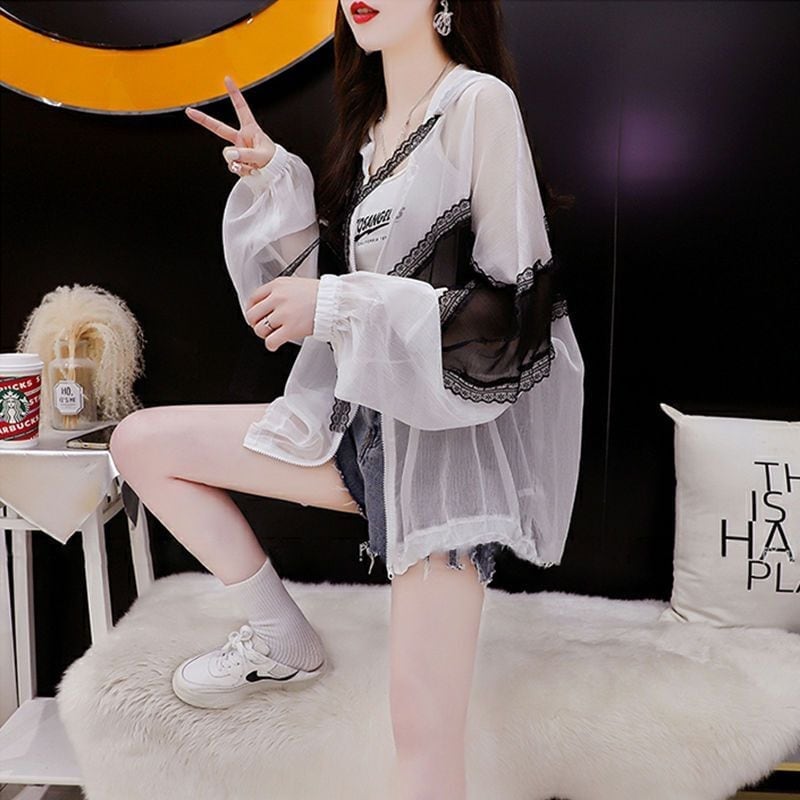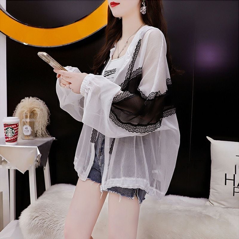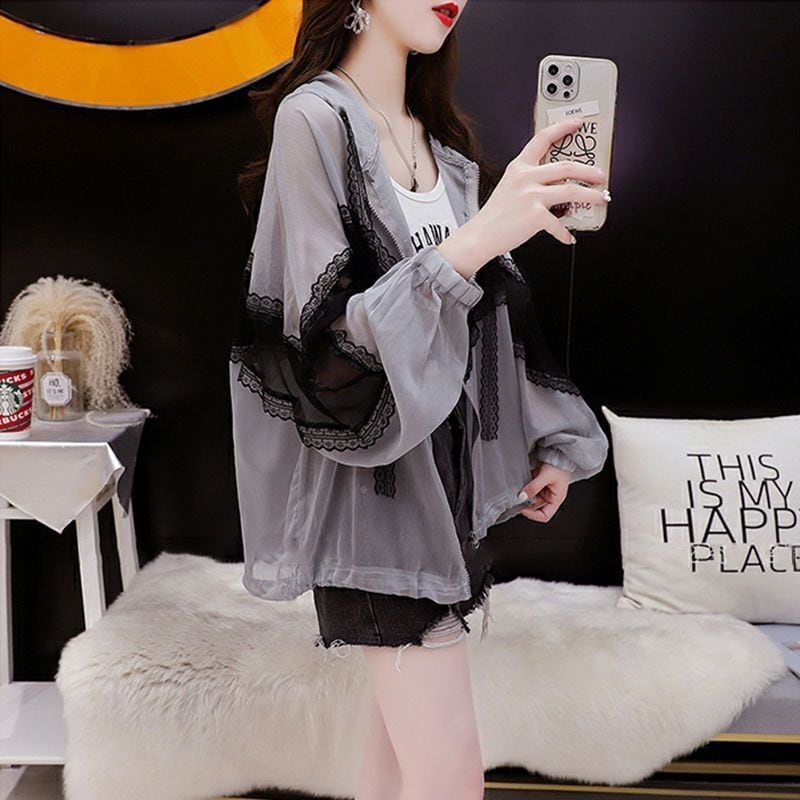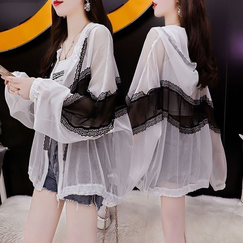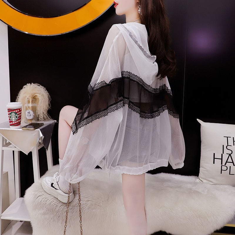 美人度アップ カジュアル 透け感 日焼け対策 切り替え パーカー コート<ins-8065>