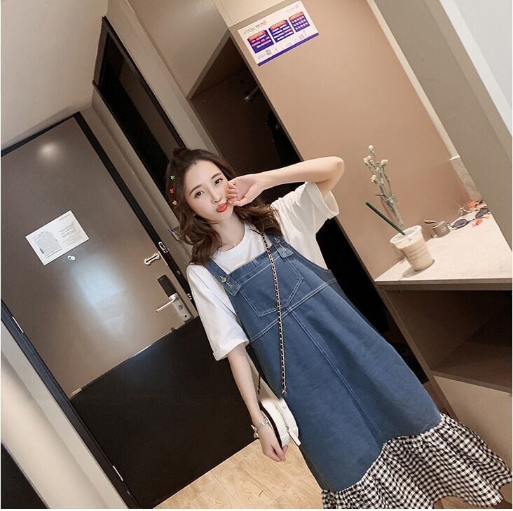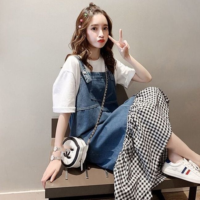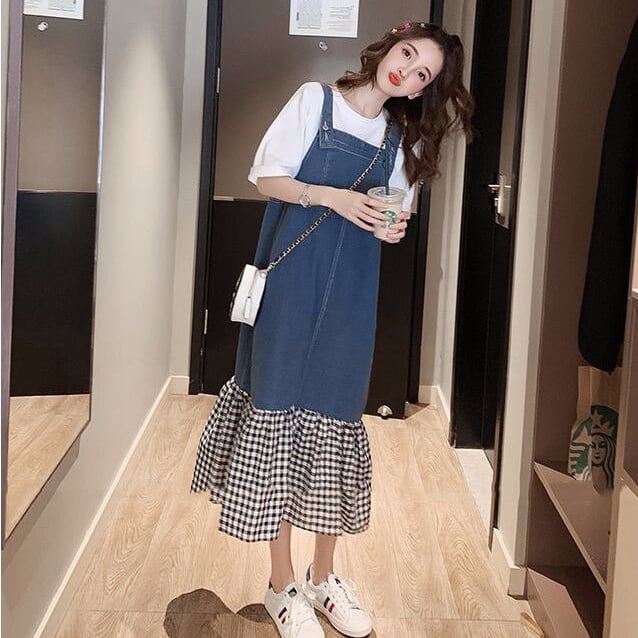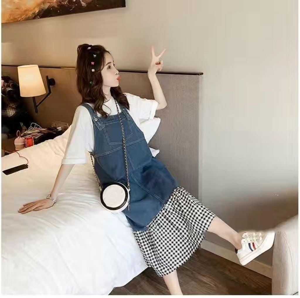 話題沸騰中 オシャレ度満点 切り替え 半袖Tシャツ+ワンピース セットアップ<ins-8322>
